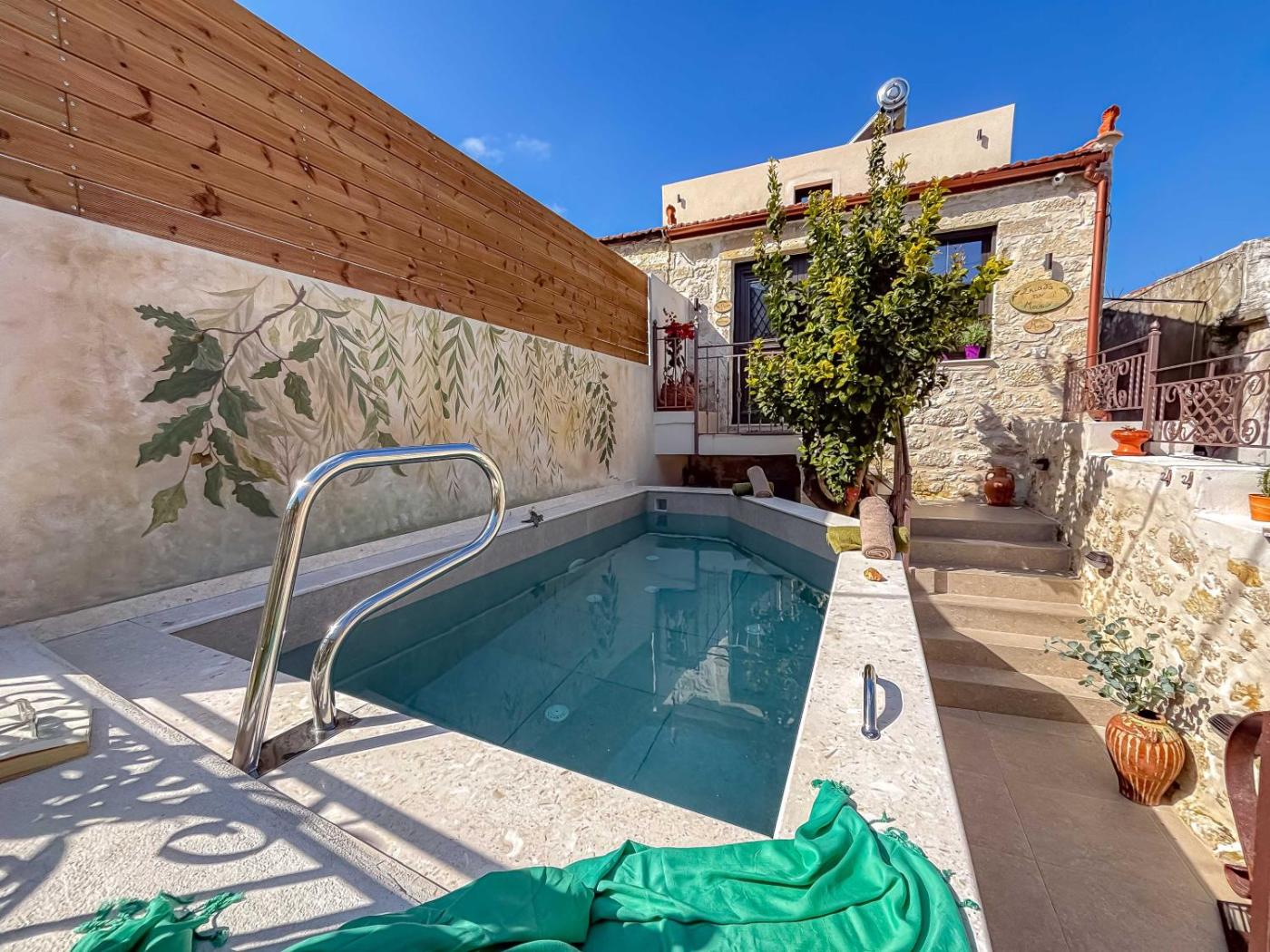 Thalia Suite with Hot Tub. Guests will have a special experience as the villa features a hot tub. Boasting a private entrance, this air-conditioned villa includes a kitchen, 2 bedrooms and 1 bathroom with a shower and a hairdryer. Guests will find a stovetop, a refrigerator, kitchenware and an oven in the well-fitted kitchen. The villa also features a barbecue. Featuring a terrace with mountain views, this villa also offers a washing machine and a flat-screen TV with cable channels. The unit has 2 beds.